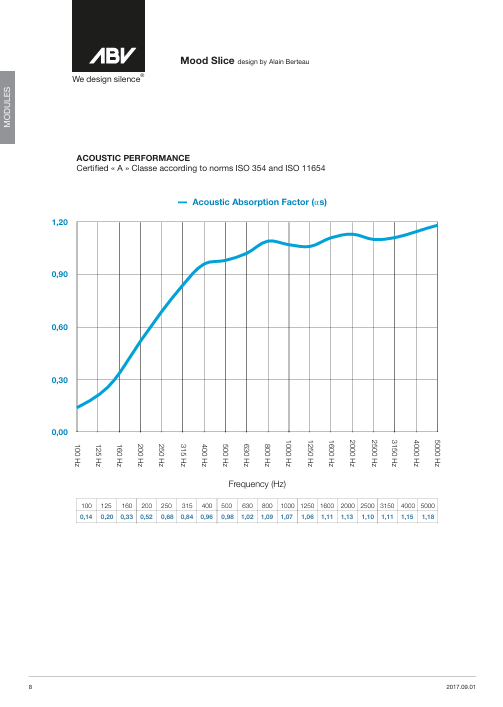 Certified « A » Classe according to norms ISO 354 and ISO 11654
